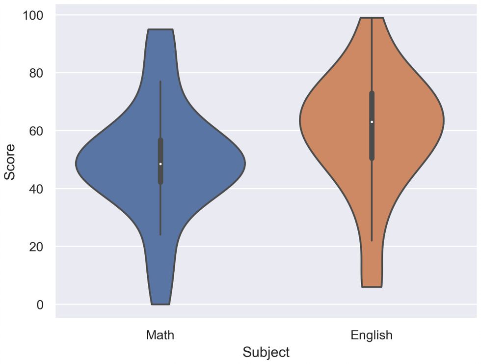 The above figure showcases the violin plot for multiple variables (English and Math)