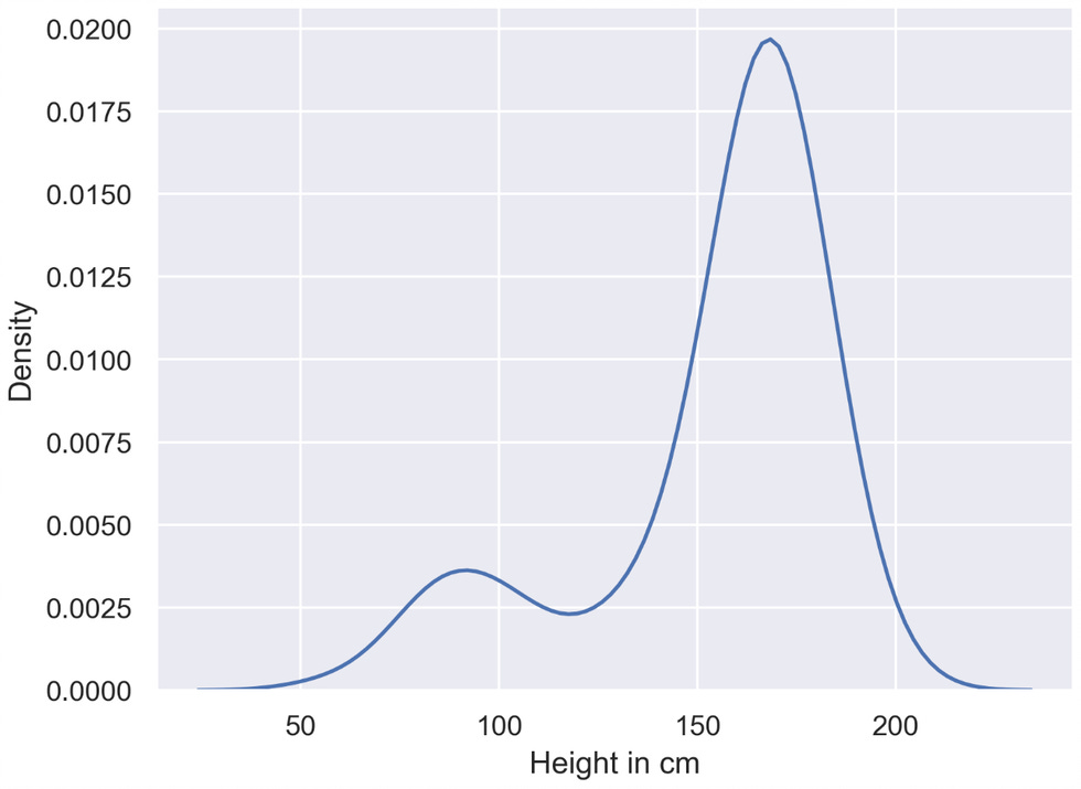 The density plot is primarily used for comparing the distribution of several variables by plotting the density on the same axis and using different colors. The following diagram shows a density plot for multiple variables such as height and density.