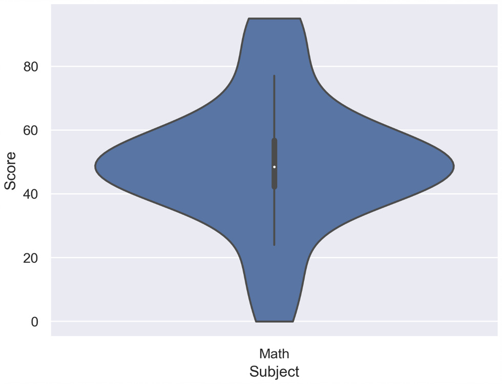 The violin plots are used in comparing statistical measures and the density for multiple variables or groups. The following diagram shows a violin plot for a single variable and shows how students have performed in Math: